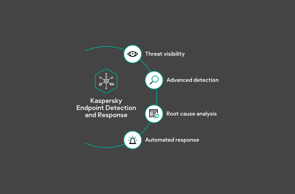کسپرسکی یک راهحل امنیتی است که قابلیت بررسی فعالیت سیستمها در لحظه را ارائه میدهد. این کار با تشخیص رفتار مخرب، نظارت و ضبط اطلاعات سیستمها بههمراه پاسخ به تهدیدات انجام میشود. راهکار های جدید کسپرسکی دارای چهار قابلیت اصلی است: جلوگیری از گسترش حوادث امنیتی، تشخیص تهدیدات، واکنش به حوادث و تحقیقات در مورد حادثه.