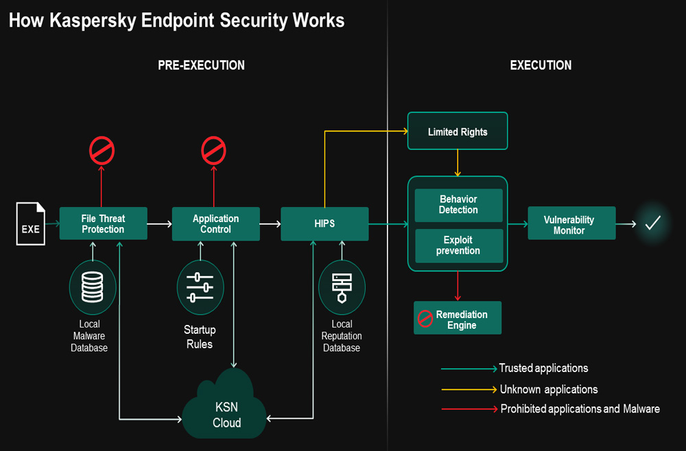 Kaspersky Endpoint Security برای Windows آزمایش شده ترین و با جایزه ترین برنامه امنیتی جهان است که توسط فناوریهای نسل بعدی برای محافظت از تمام نقاط پایانی ویندوز – و دادههای موجود در آنها، پشتیبانی میشود.